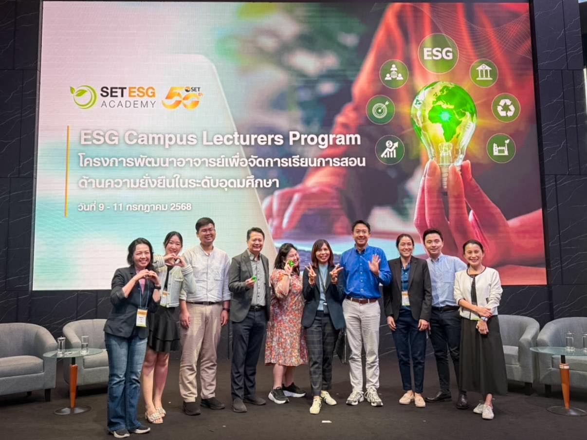 เมื่อวันที่ 9-11 กรกฎาคม 2568 รองศาสตราจารย์ ดร.กุลภา โสรัตน์ คณบดี พร้อมด้วย ผู้ช่วยศาสตราจารย์ ดร.ใกล้รุ่ง พรอนันต์ รองคณบดีฝ่ายวิชาการ ได้เข้าร่วมโครงการพัฒนาอาจารย์เพื่อจัดการเรียนการสอนด้านความยั่งยืนในระดับอุดมศึกษา (ESG Campus Lecturers Program) ที่จัดโดยตลาดหลักทรัพย์แห่งประเทศไทย (ตลท.