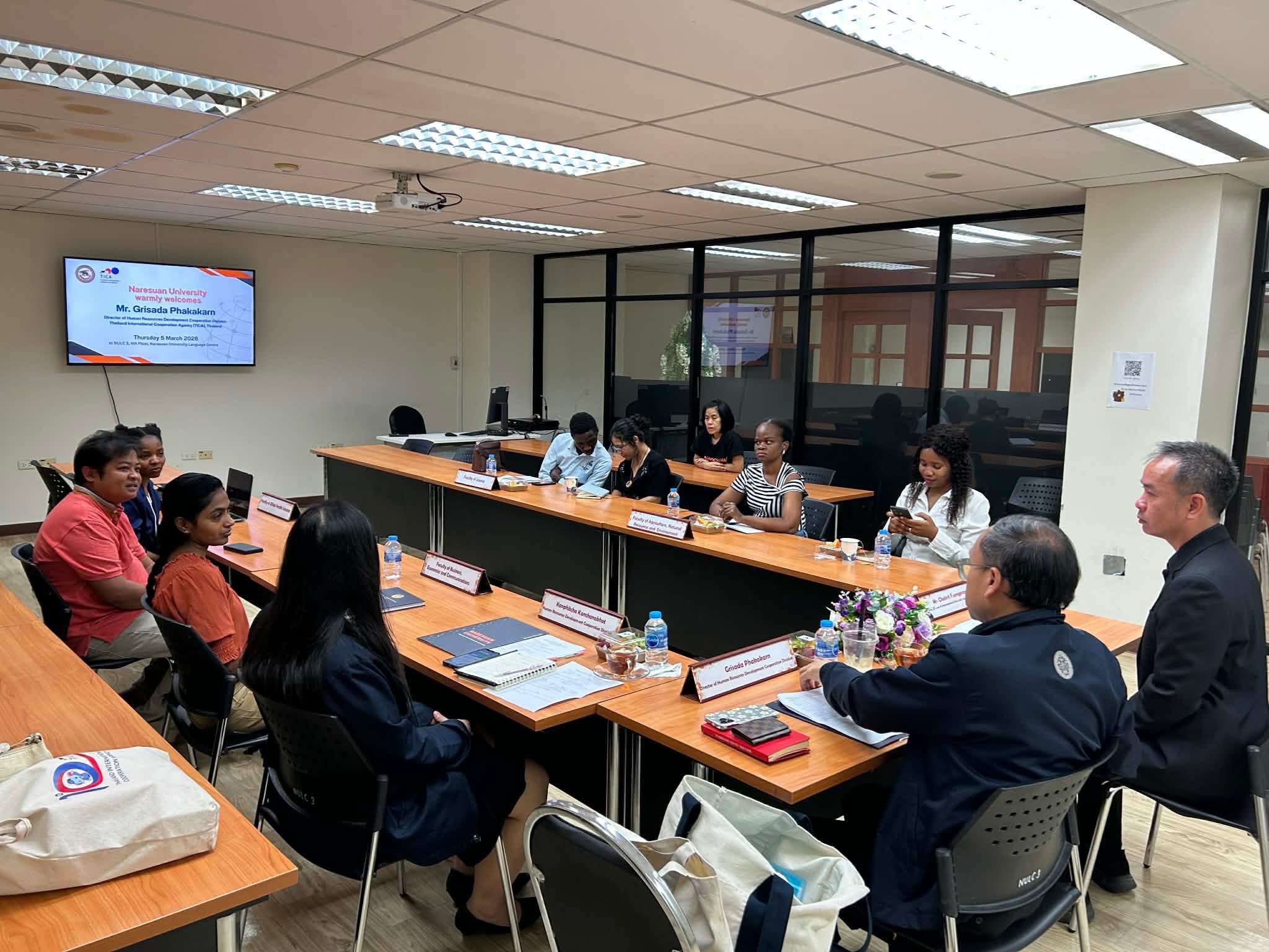 มหาวิทยาลัยนเรศวร ให้การต้อนรับ นายกฤษฎา ผกากาญจน์ ผู้อำนวยการกองความร่วมมือด้านทุน กรมความร่วมมือระหว่างประเทศ กระทรวงการต่างประเทศ พร้อมด้วย นางสาวกานต์พิชชา กาญจนะคช เจ้าหน้าที่โครงการ TIPP ในโอกาสเยือนมหาวิทยาลัยนเรศวร เพื่อพบอาจารย์ที่ปรึกษาและนิสิตผู้รับทุนศึกษารัฐบาลไทยระดับปริญญาโทหลักสูตรนานาชาติ (Thailand International Postgraduate Program: TIPP) ซึ่งเป็นโครงการสนับสนุนทุนการศึกษาระดับปริญญาโทร่วมกันระหว่างกรมความร่วมมือระหว่างประเทศและมหาวิทยาลัยนเรศวร