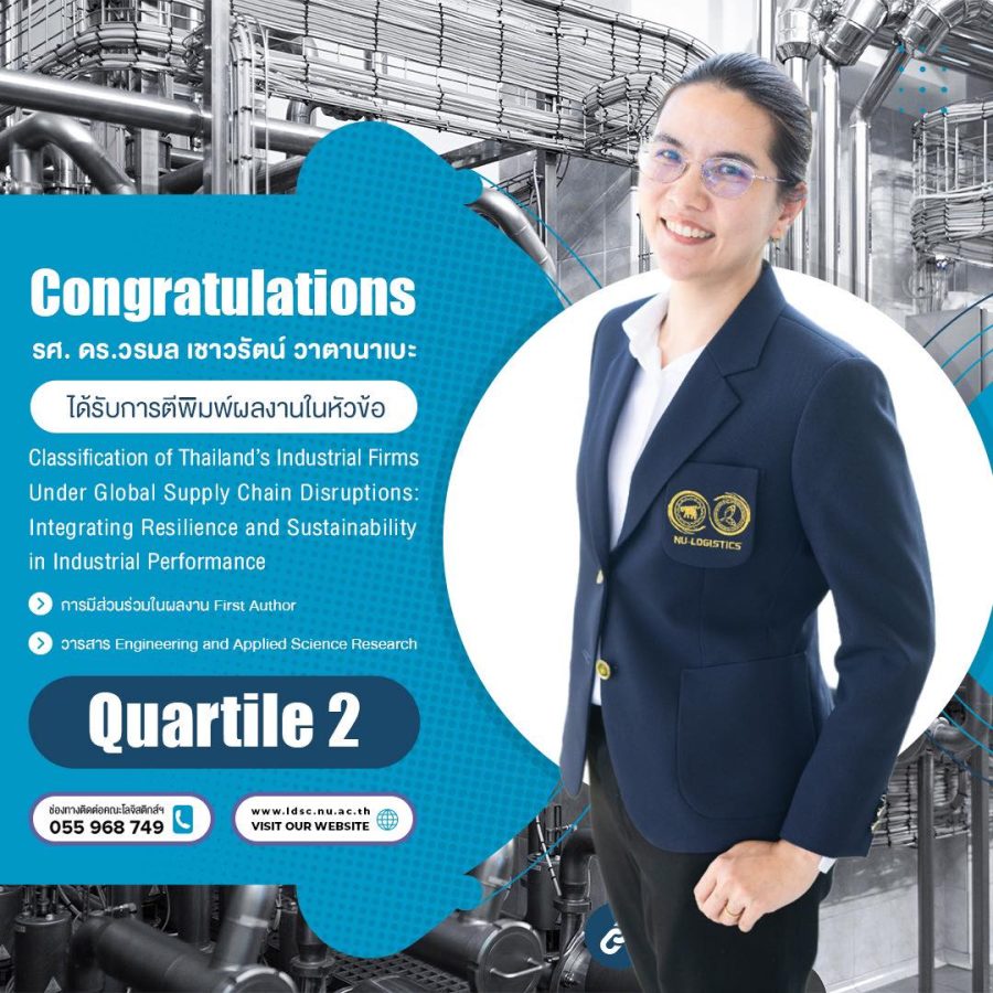 คณะโลจิสติกส์และดิจิทัลซัพพลายเชน มหาวิทยาลัยนเรศวร ขอแสดงความยินดีกับ รศ. ดร.วรมล เชาวรัตน์ วาตานาเบะ ในโอกาสที่ผลงานวิจัยได้รับการตีพิมพ์ในวารสารวิชาการระดับนานาชาติ