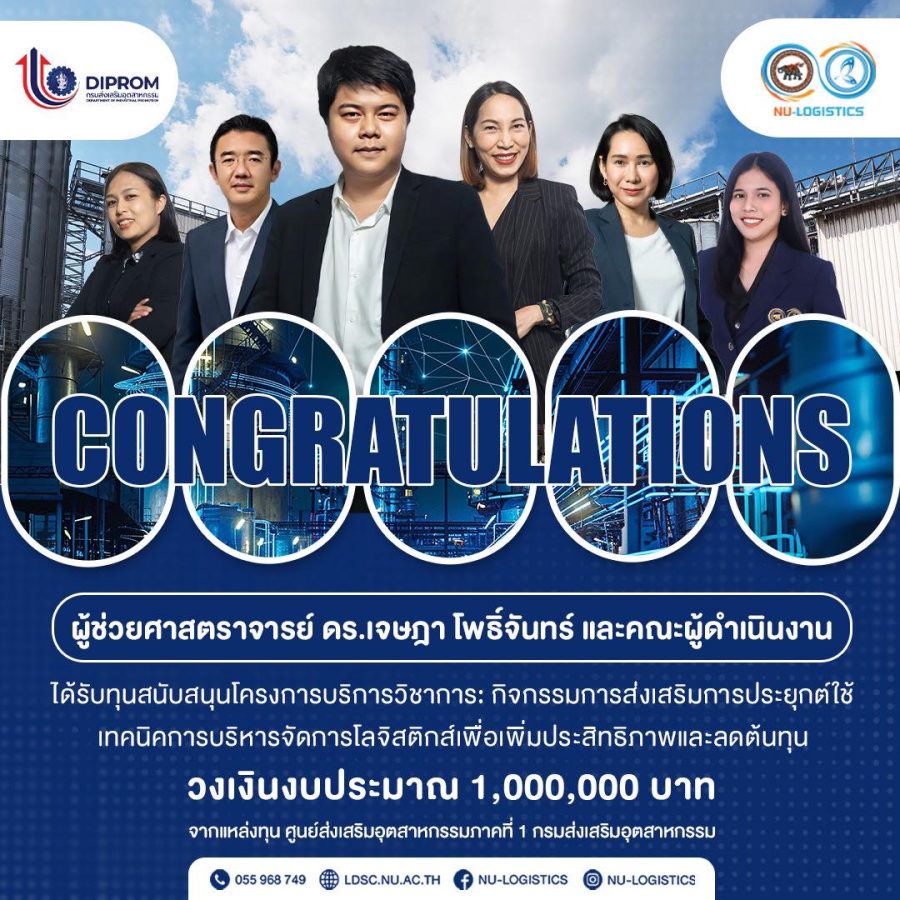 คณะโลจิสติกส์และดิจิทัลซัพพลายเชน มหาวิทยาลัยนเรศวร ขอแสดงความยินดีกับ ผู้ช่วยศาสตราจารย์ ดร.เจษฎา โพธิ์จันทร์ และคณะผู้ดำเนินงาน ในโอกาสได้รับทุนสนับสนุนโครงการบริการวิชาการ